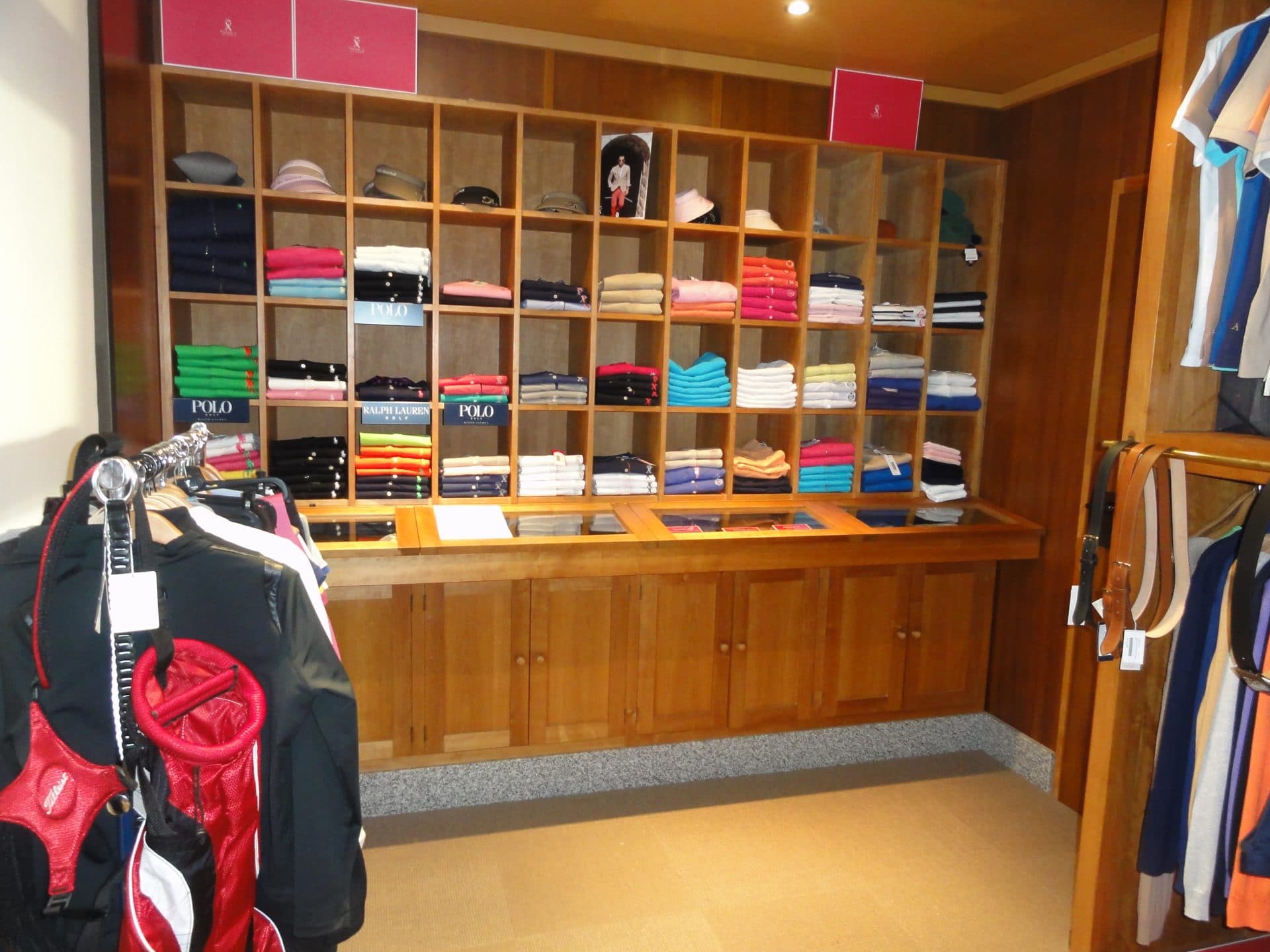 Pullovers, twin set, accessoires en cachemire, polos, casquettes et divers articles pour la pratique du golf.